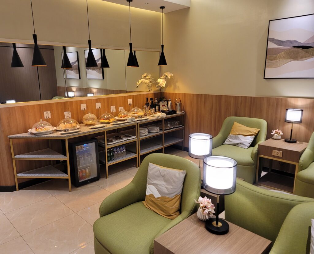 They call their lounges Marhaba. The lounge has numerous sofas and a counter with drinks and food. The bar is not very well stocked. For example, they don’t have white rum at the lounge in Manila.
