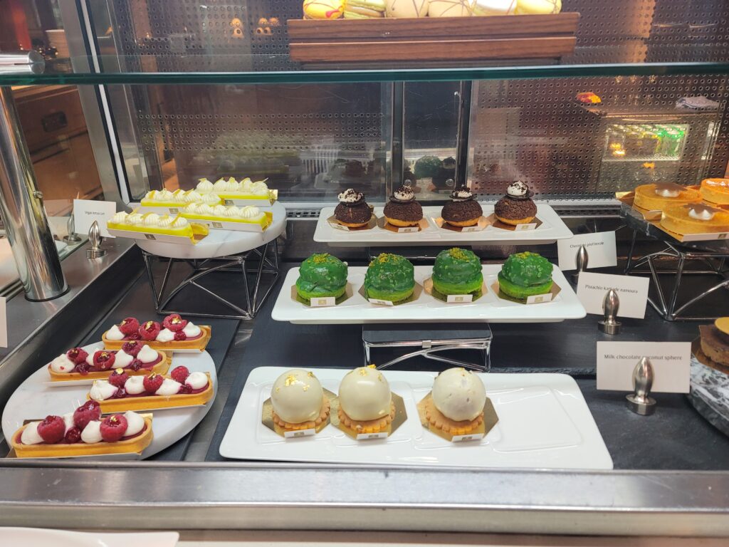 The First Class lounge in Dubai is very large and they probably have 10 chefs that work all night. They prepare various dishes and pastries and meals to order.