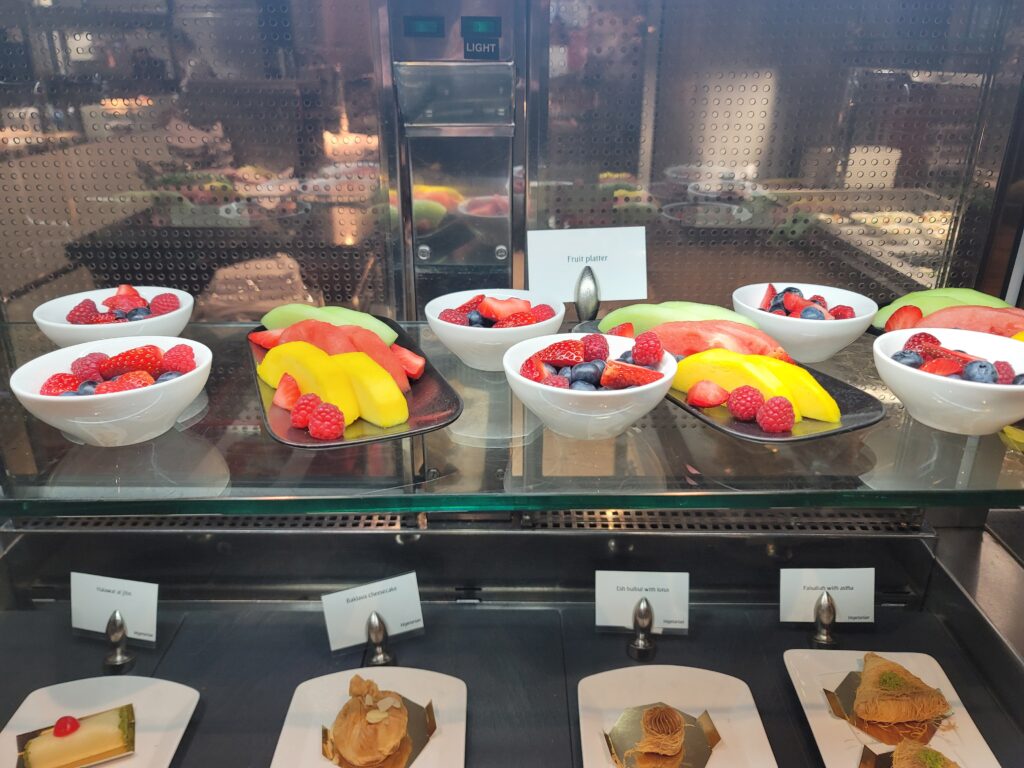 Secondly, on both occasions that I asked for wine with dinner, the waiter made an outstanding selection. They told me they don’t have a fixed wine list, but the two best wines I have drunk in the past year were both selections made for me by waiters in the Dubai lounge.