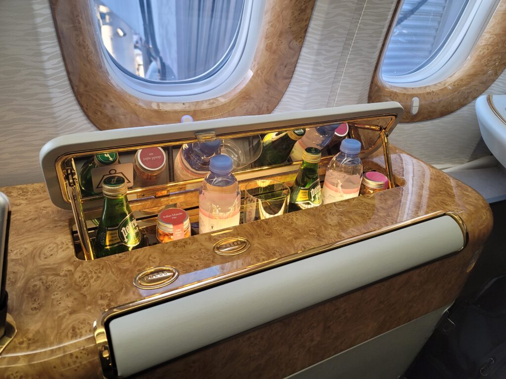 I have never flown on their double-decker A380 on which they have a shower for first class passengers and a standalone bar. That is for the future. This 777 experience is plenty good enough.