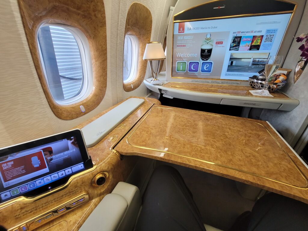As I write this, I am in a First Class Suite on Emirates flight EK 333 from Manila to Dubai. We will arrive in Dubai in 2 hours and I am sorry the flight will be over soon.
